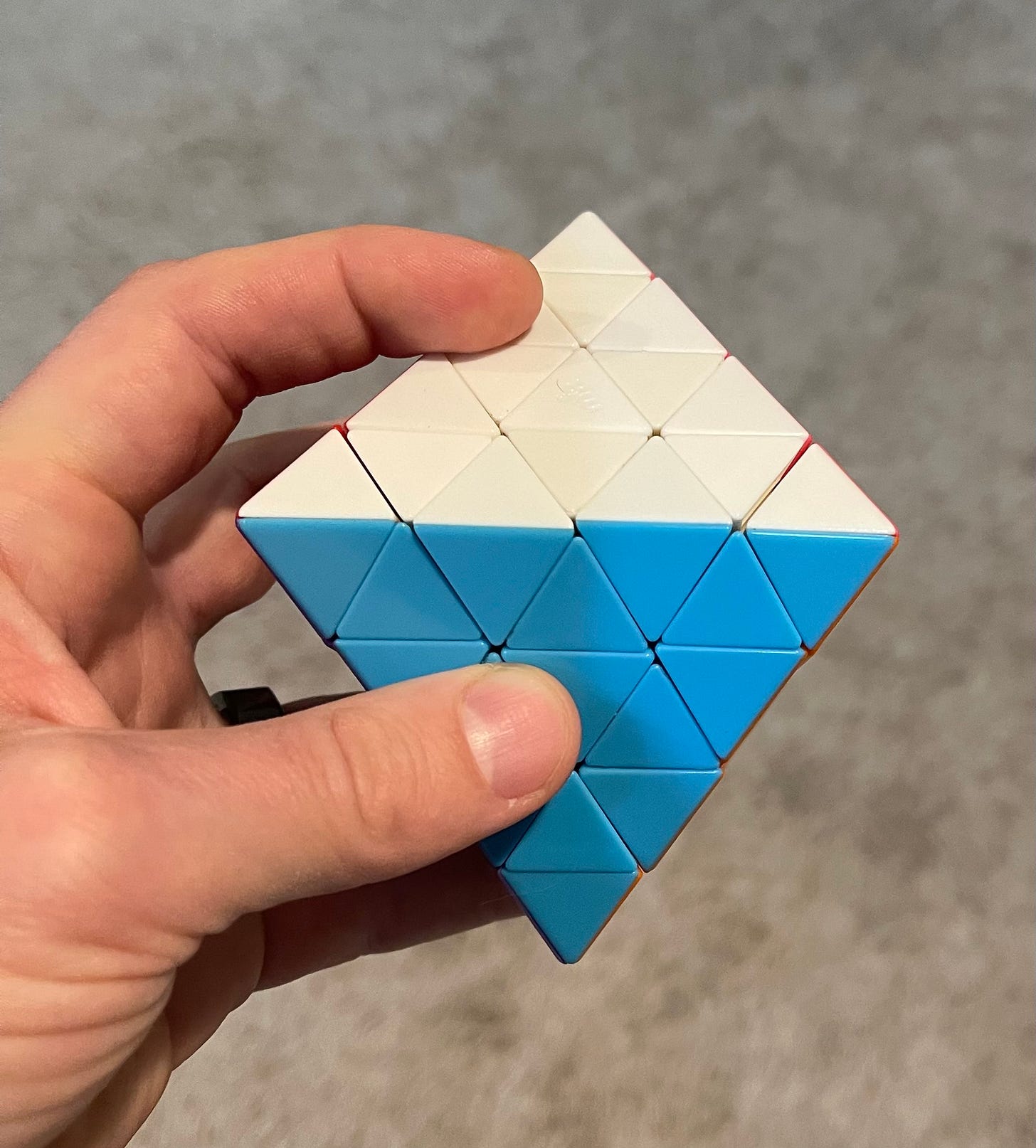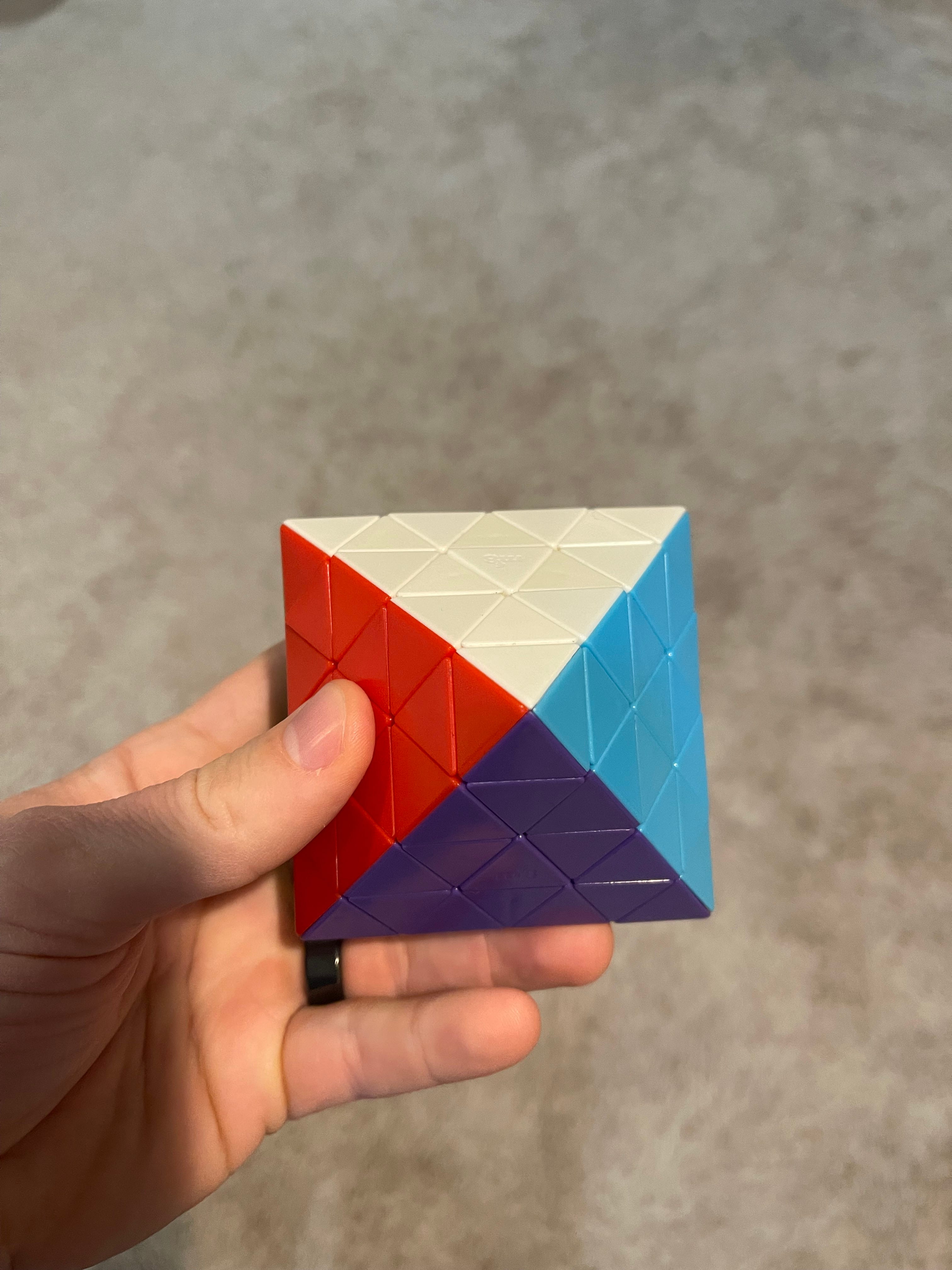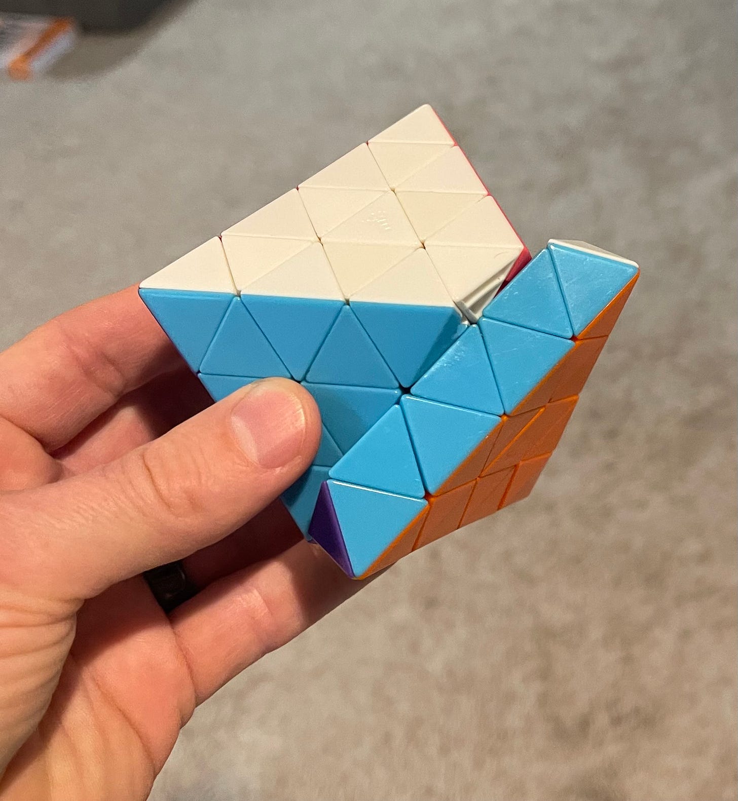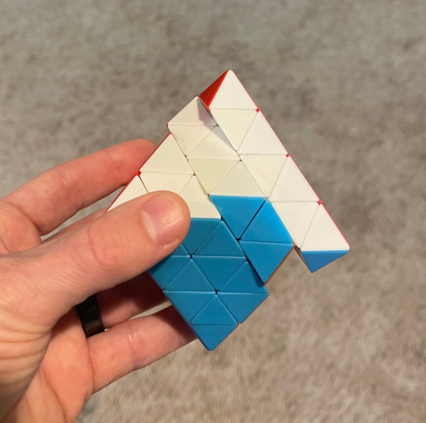 Absolutely none of this will make sense without a physical puzzle in your hand that you’re actively trying to solve. So pick one up and enjoy! I got mine from The Cubicle, but a quick search suggests every major retailer of twisty puzzles carries it. MF8 makes a mass manufactured version. It’s pretty solidly built and turns well, though it may require a little lubricant. I lubricated mine as soon as I got it, and I’ve experienced no pops or explosions. For slice moves, I find that doing a wide move then undoing the face move works better than trying to turn the slice independently. Happy twisty-puzzling!